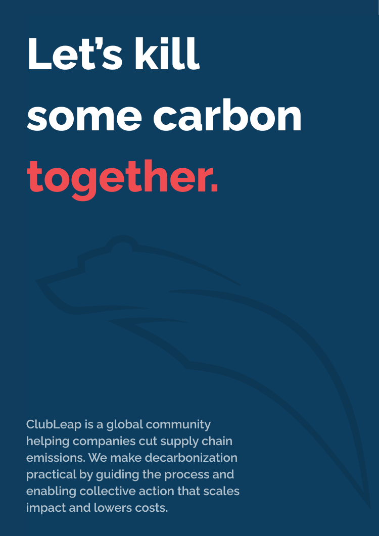 ClubLeap is a global community and collaborative platform helping companies lower their supply chain carbon footprint. We make supply chain decarbonization practical and accessible by keeping you ahead of the curve, helping you navigate the process and enabling action together, Moving together creates scale, lowers costs and accelerates impact.