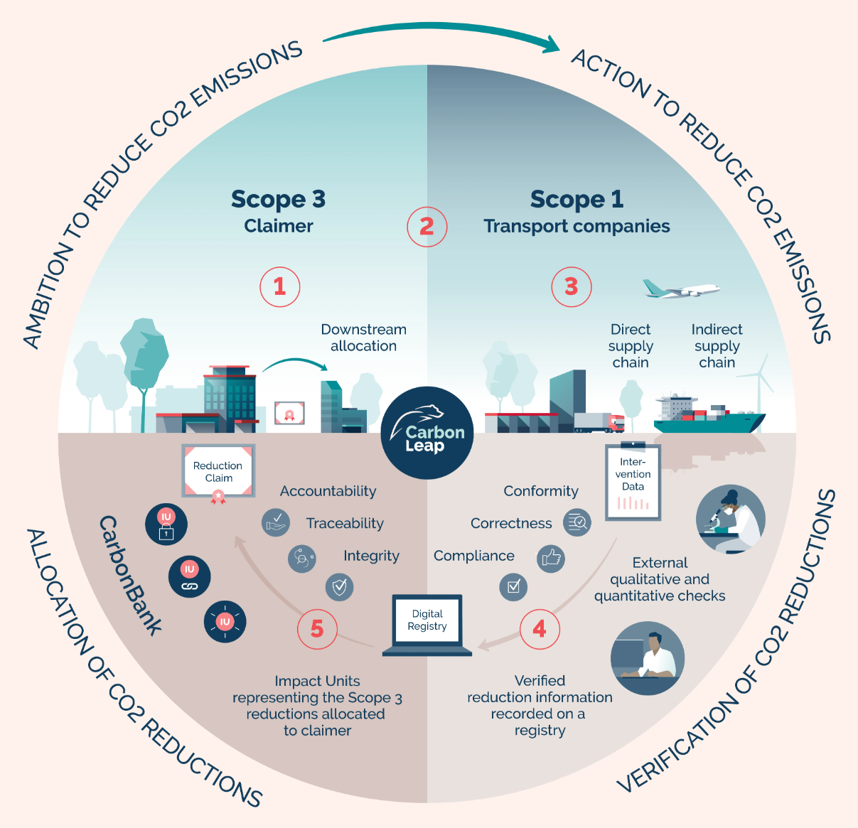 To achieve this, CarbonLeap employs a Book and Claim chain of custody model that transforms verified Scope 1 and Scope 3 reductions into trusted, verifiable Transport Impact Units (TIUs). Each reduction is independently verified by third parties and securely managed through CarbonLeap's CarbonBank, with additional verification by DNV.